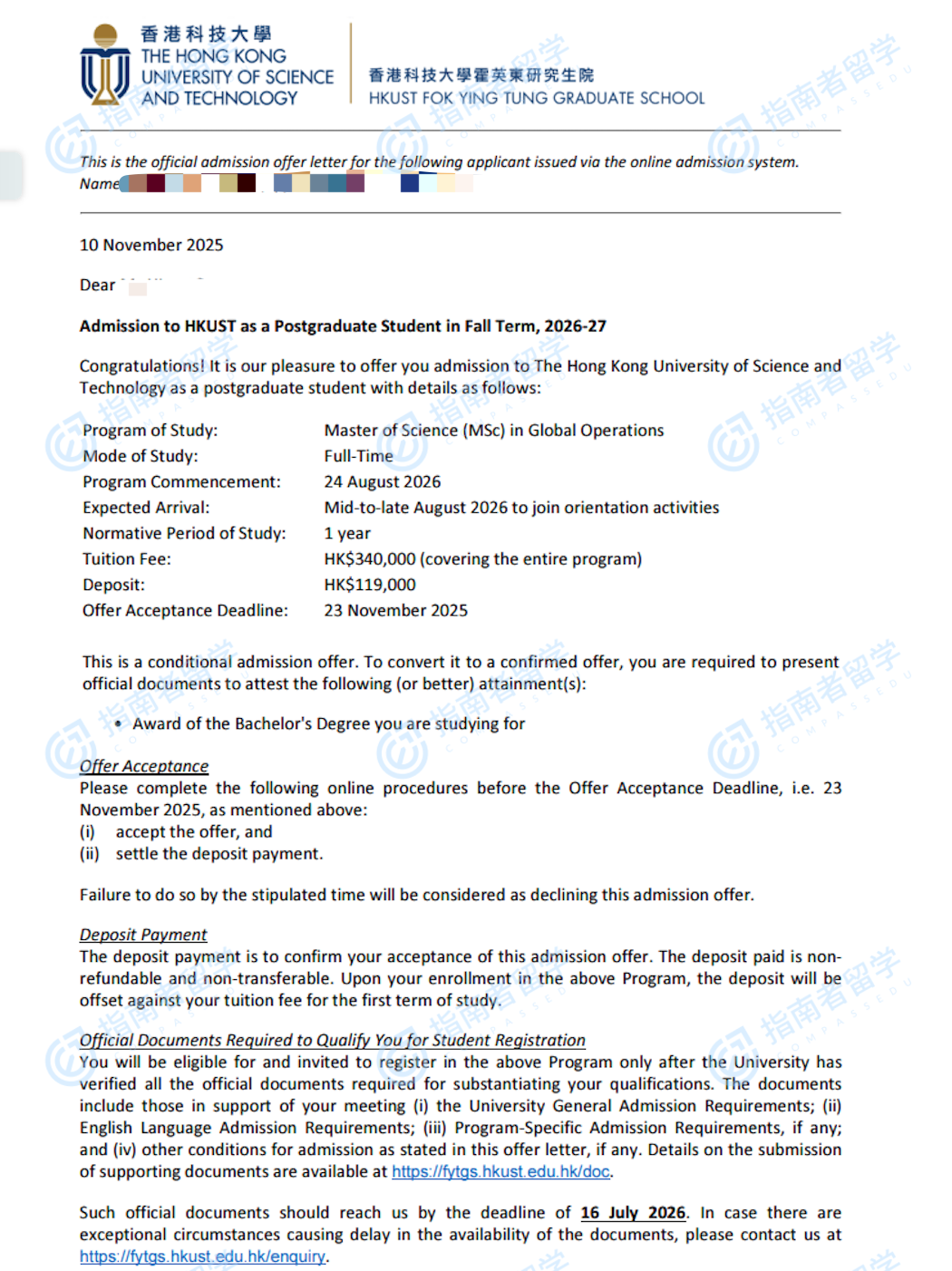 香港科技大學(xué)全球運(yùn)營理學(xué)碩士研究生offer一枚