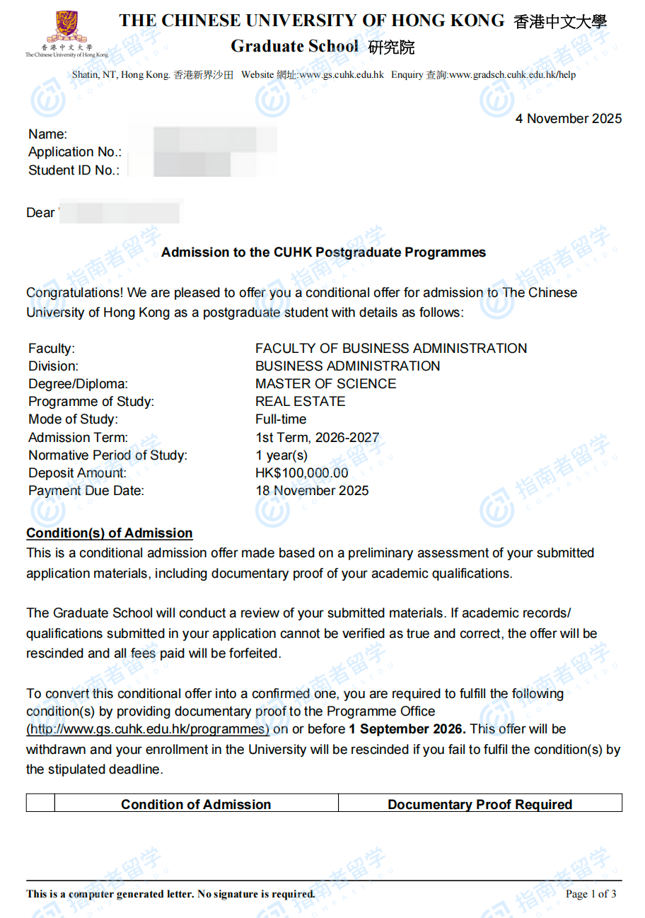 香港中文大學(xué)房地產(chǎn)理學(xué)碩士研究生offer一枚