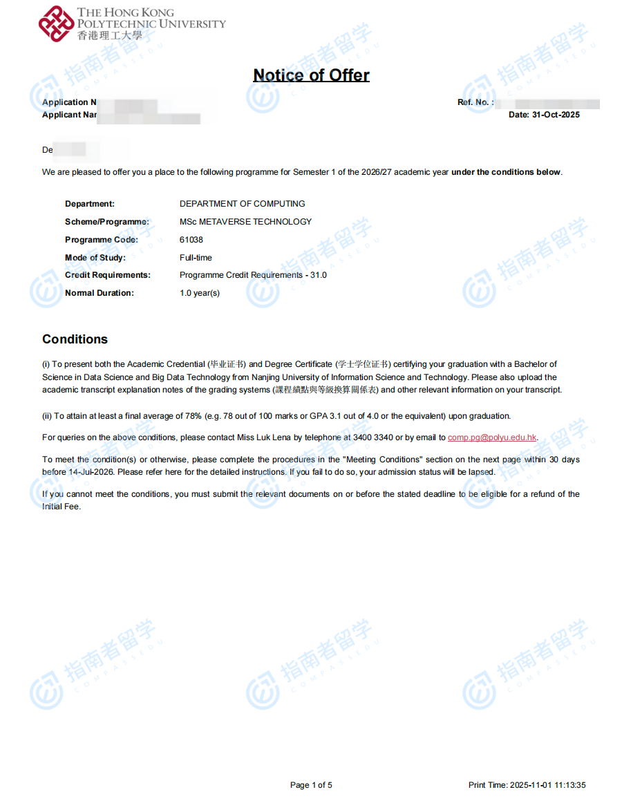 香港理工大學(xué)元宇宙科技理學(xué)碩士研究生offer一枚
