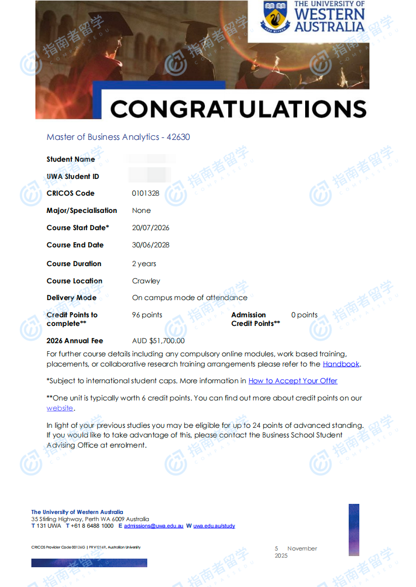 西澳大學(xué)商業(yè)分析碩士研究生offer一枚