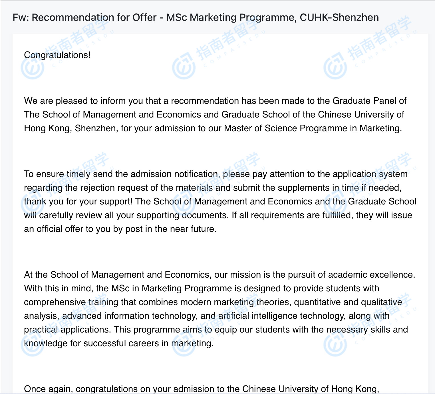 香港中文大學(xué)市場(chǎng)學(xué)理學(xué)碩士(CUHK-Shenzhen)研究生offer一枚