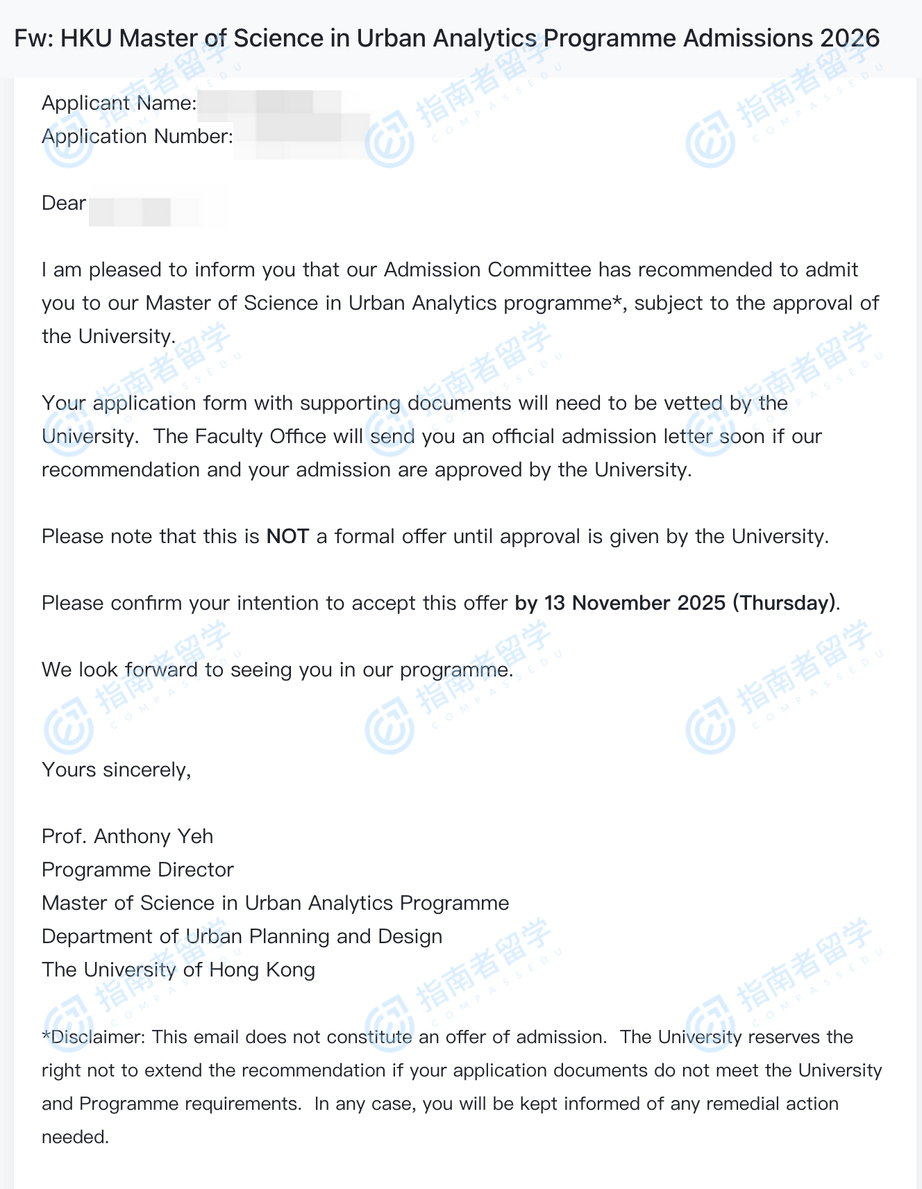 香港大學(xué)城市分析理學(xué)碩士研究生offer一枚