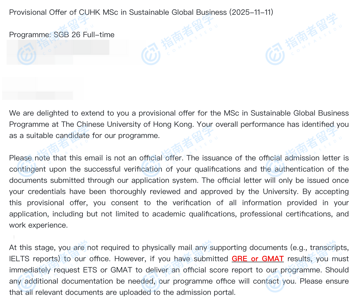 香港中文大學(xué)可持續(xù)環(huán)球商業(yè)理學(xué)碩士研究生offer一枚