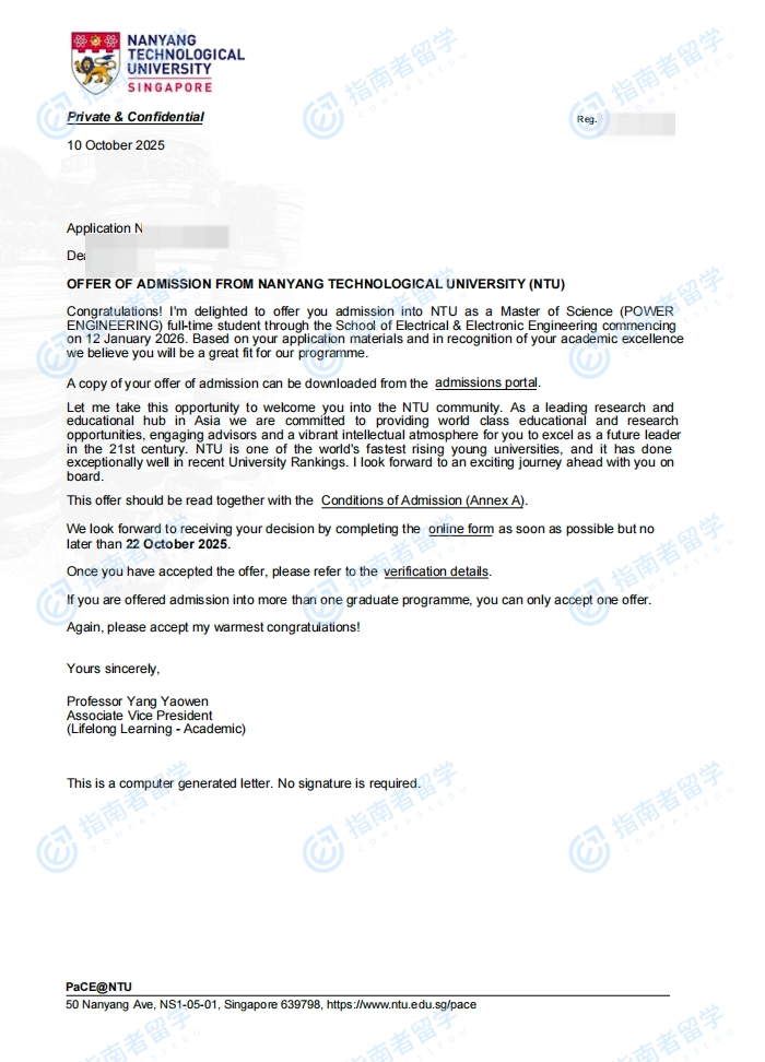 南洋理工大學(xué)電力工程理學(xué)碩士研究生offer一枚