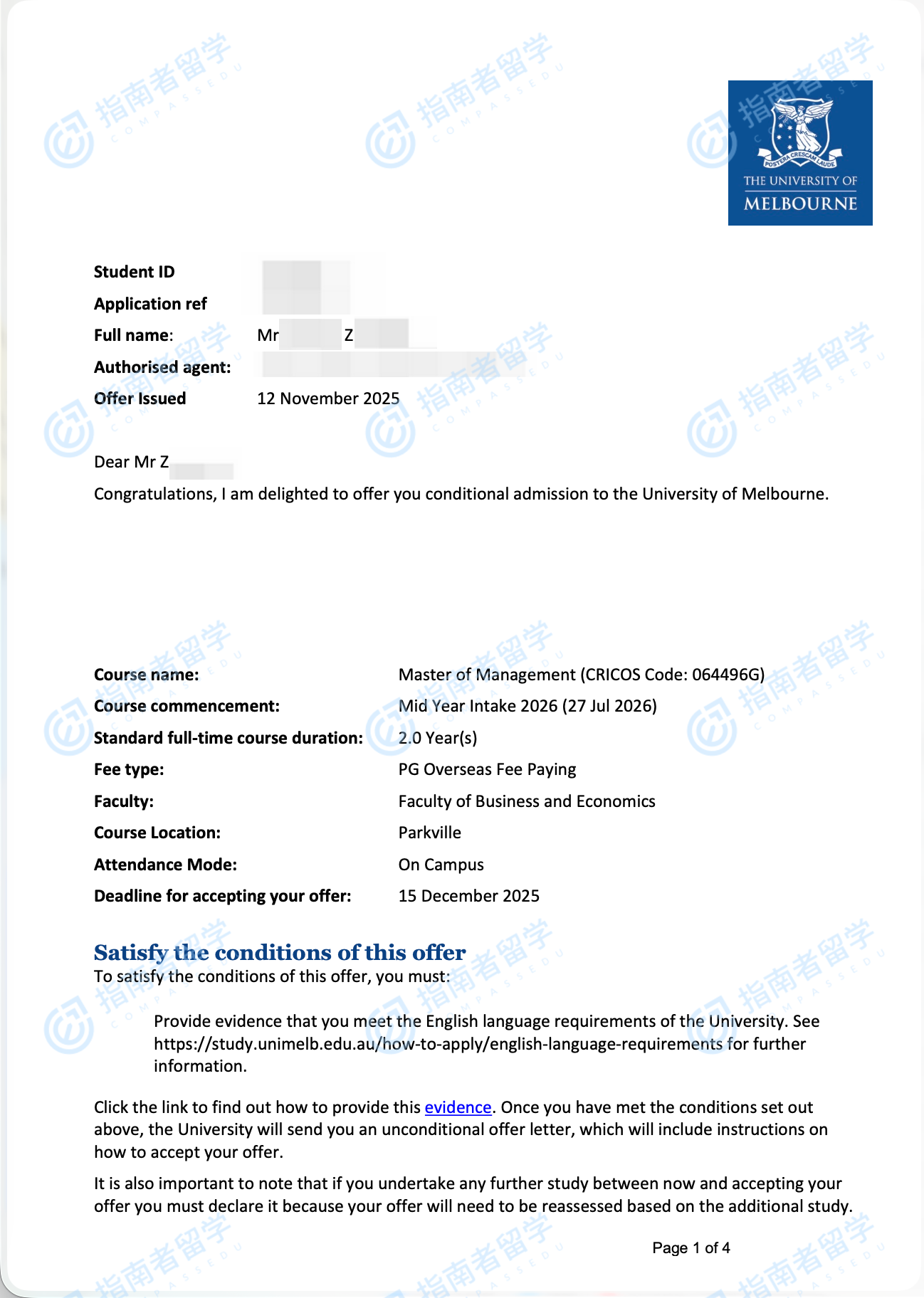 墨爾本大學(xué)管理學(xué)碩士研究生offer一枚