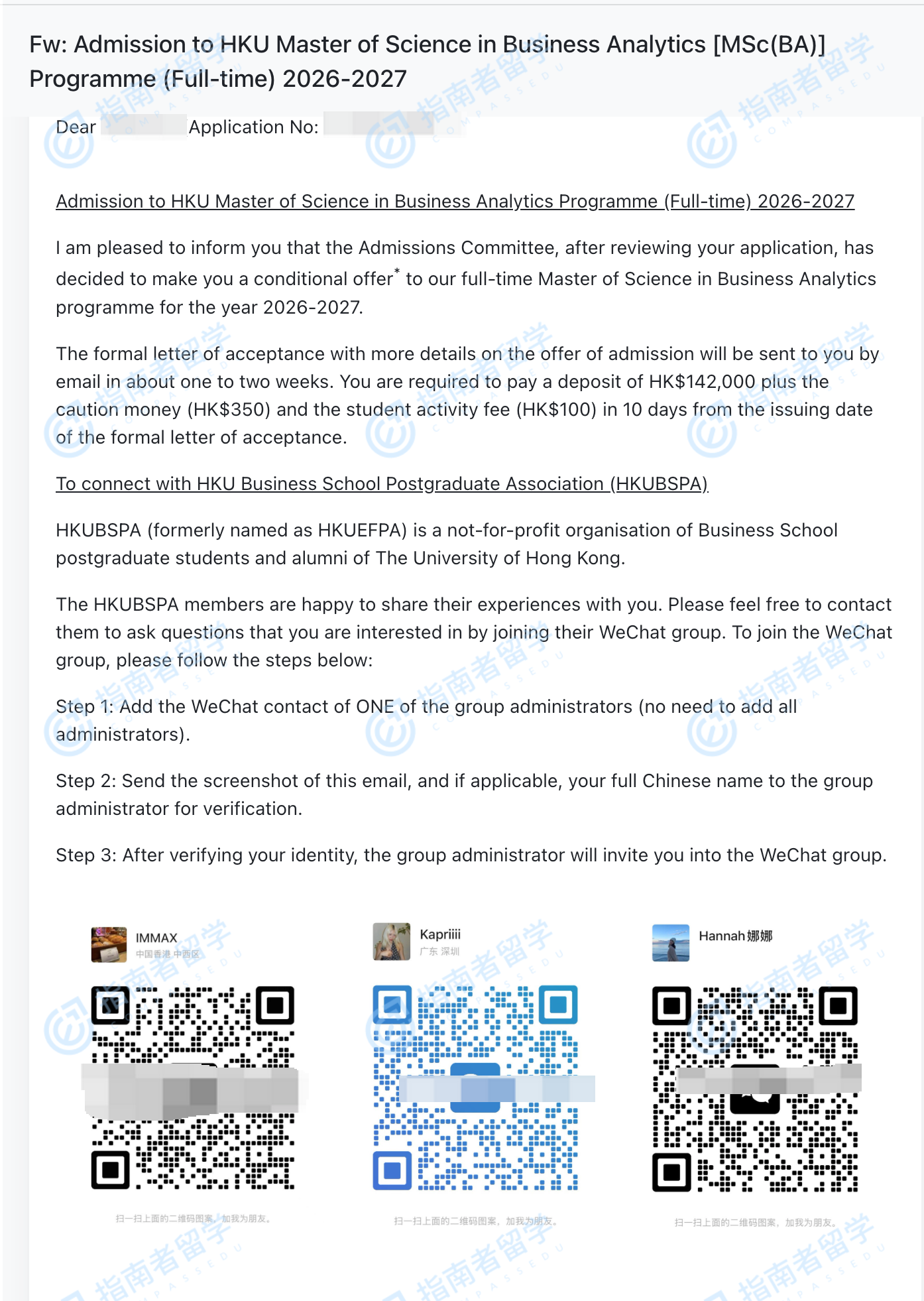 香港大學(xué)商業(yè)分析理學(xué)碩士研究生offer一枚
