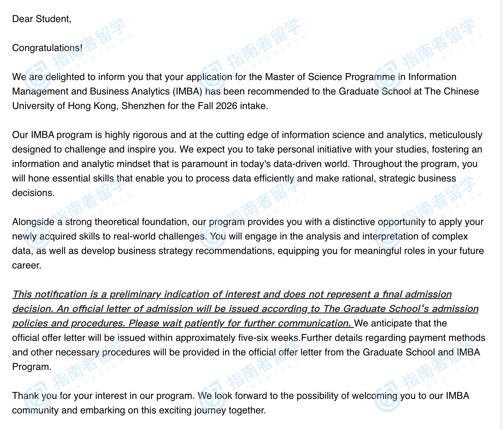 香港中文大學(xué)信息管理 & 商業(yè)分析理學(xué)碩士(CUHK-Shenzhen)研究生offer一枚