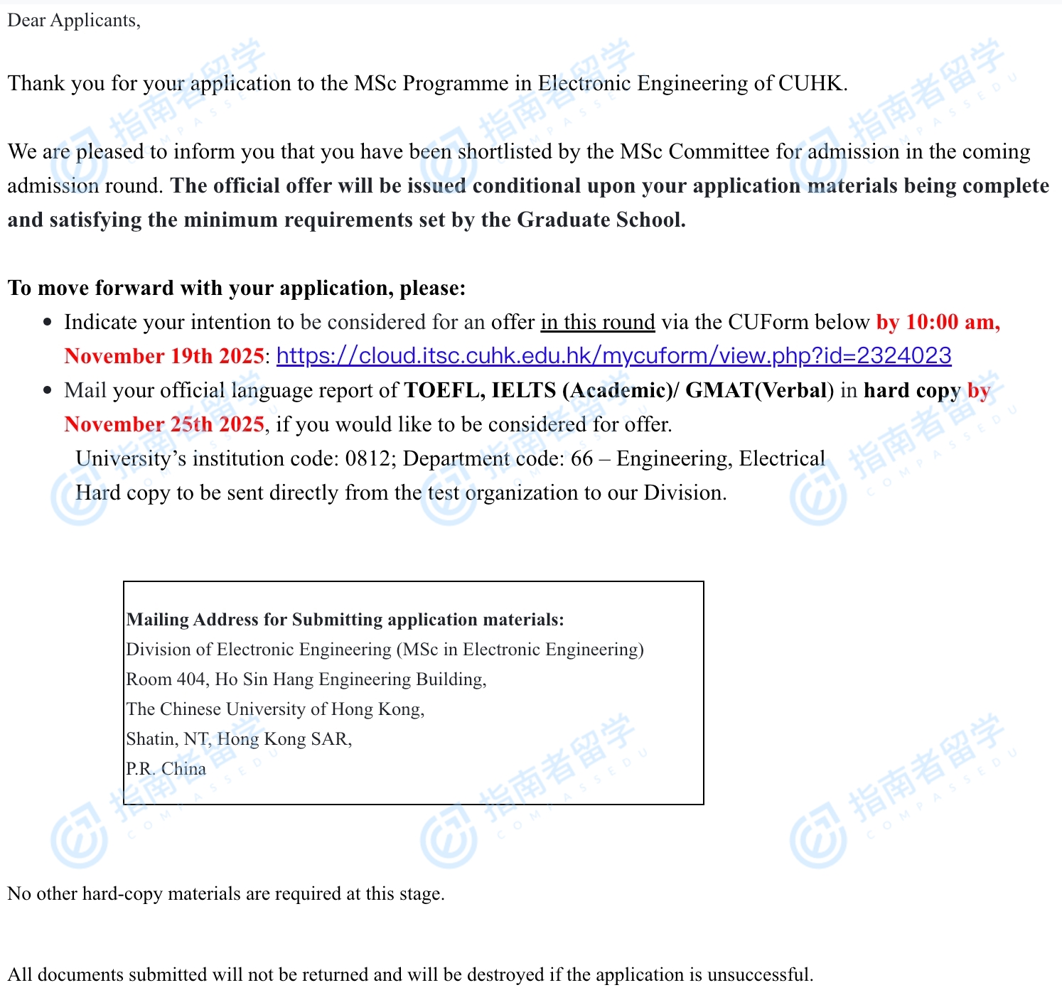 香港中文大學(xué)電子工程理學(xué)碩士研究生offer一枚