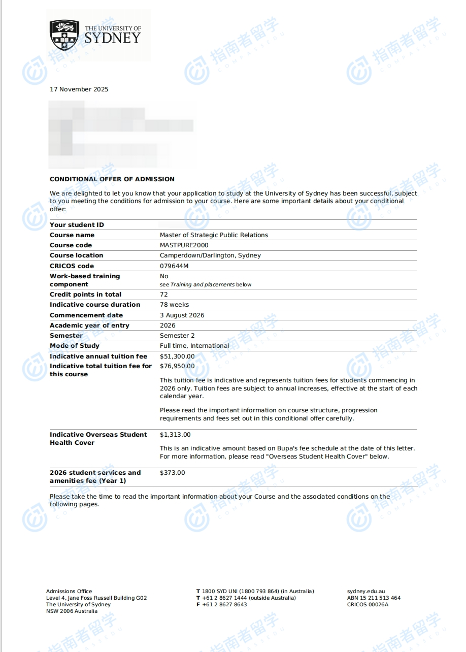 悉尼大學(xué)戰(zhàn)略公共關(guān)系碩士研究生offer一枚
