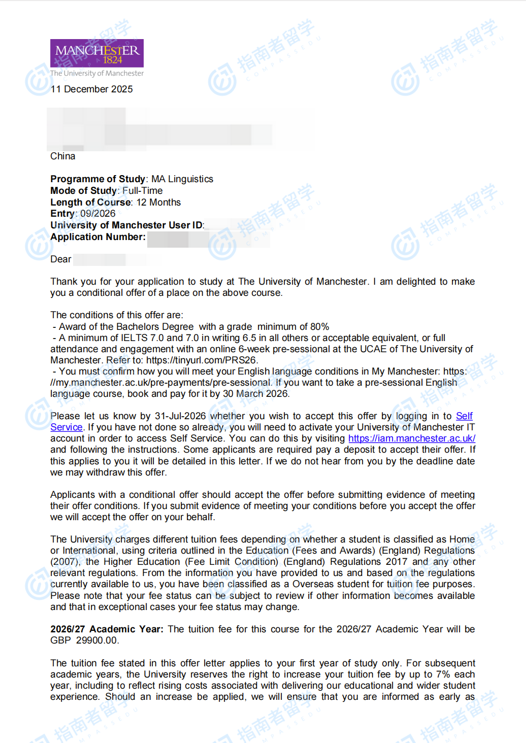 曼徹斯特大學(xué)語(yǔ)言學(xué)文學(xué)碩士研究生offer一枚