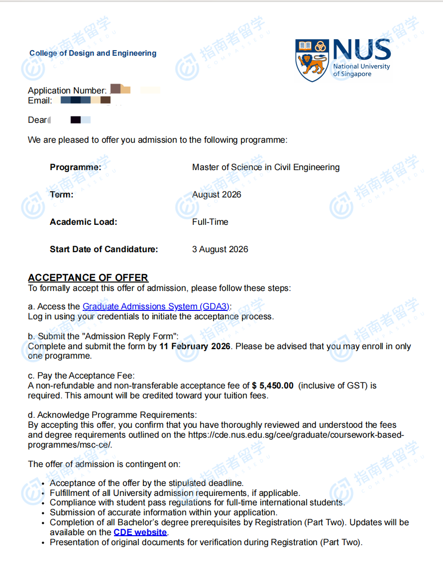 新加坡國立大學(xué)土木工程理學(xué)碩士研究生offer一枚