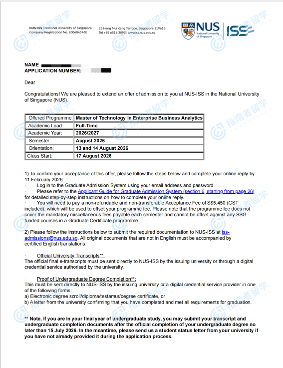 新加坡國(guó)立大學(xué)企業(yè)商業(yè)分析科技碩士研究生offer一枚