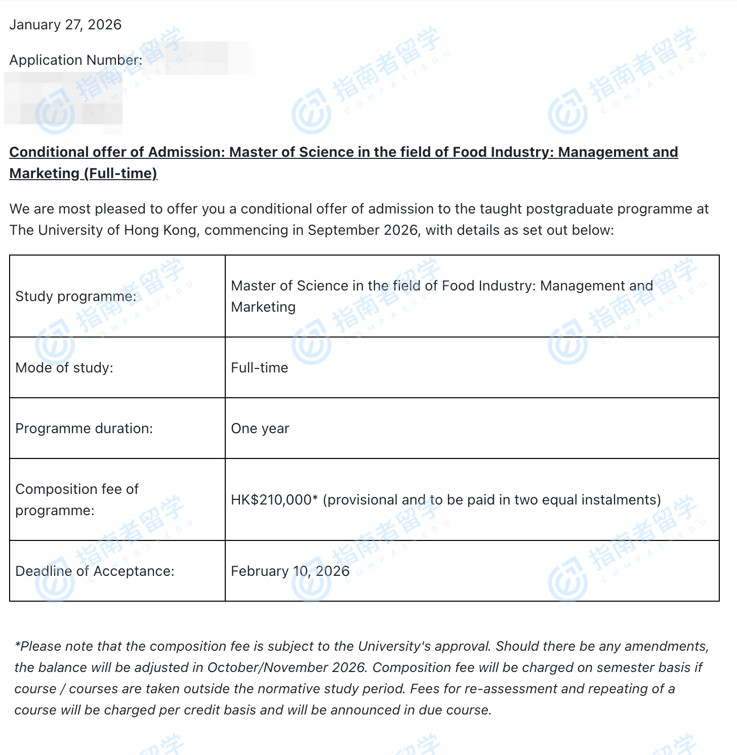 香港大學(xué)食品工業(yè):管理與市場(chǎng)營銷理學(xué)碩士研究生offer一枚
