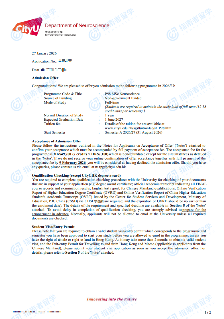 香港城市大學生物統(tǒng)計學理學碩士研究生offer一枚