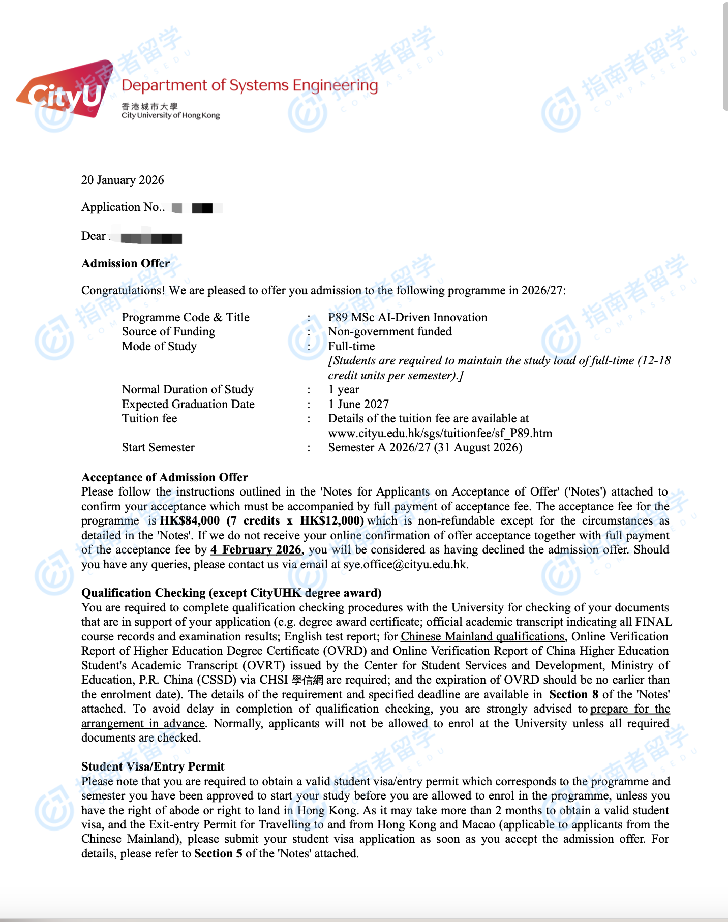香港城市大學(xué)人工智能驅(qū)動(dòng)創(chuàng)新理學(xué)碩士研究生offer一枚