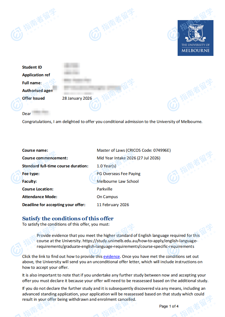 墨爾本大學(xué)法學(xué)碩士研究生offer一枚