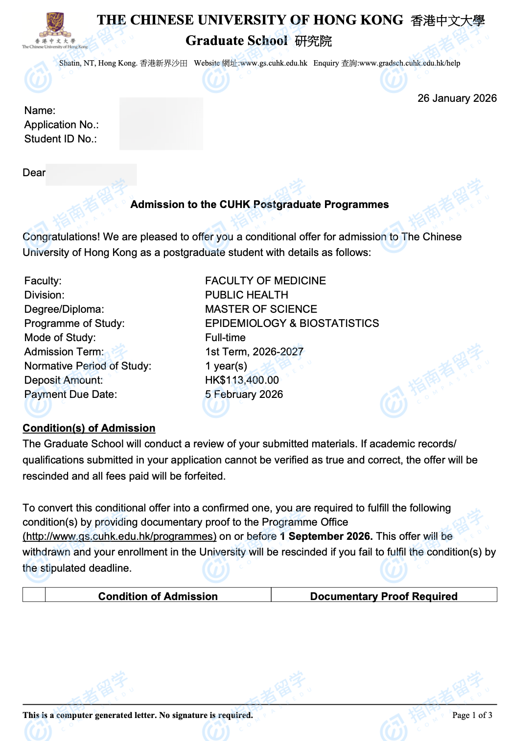 香港中文大學流行病與生物統(tǒng)計學理學碩士研究生offer一枚