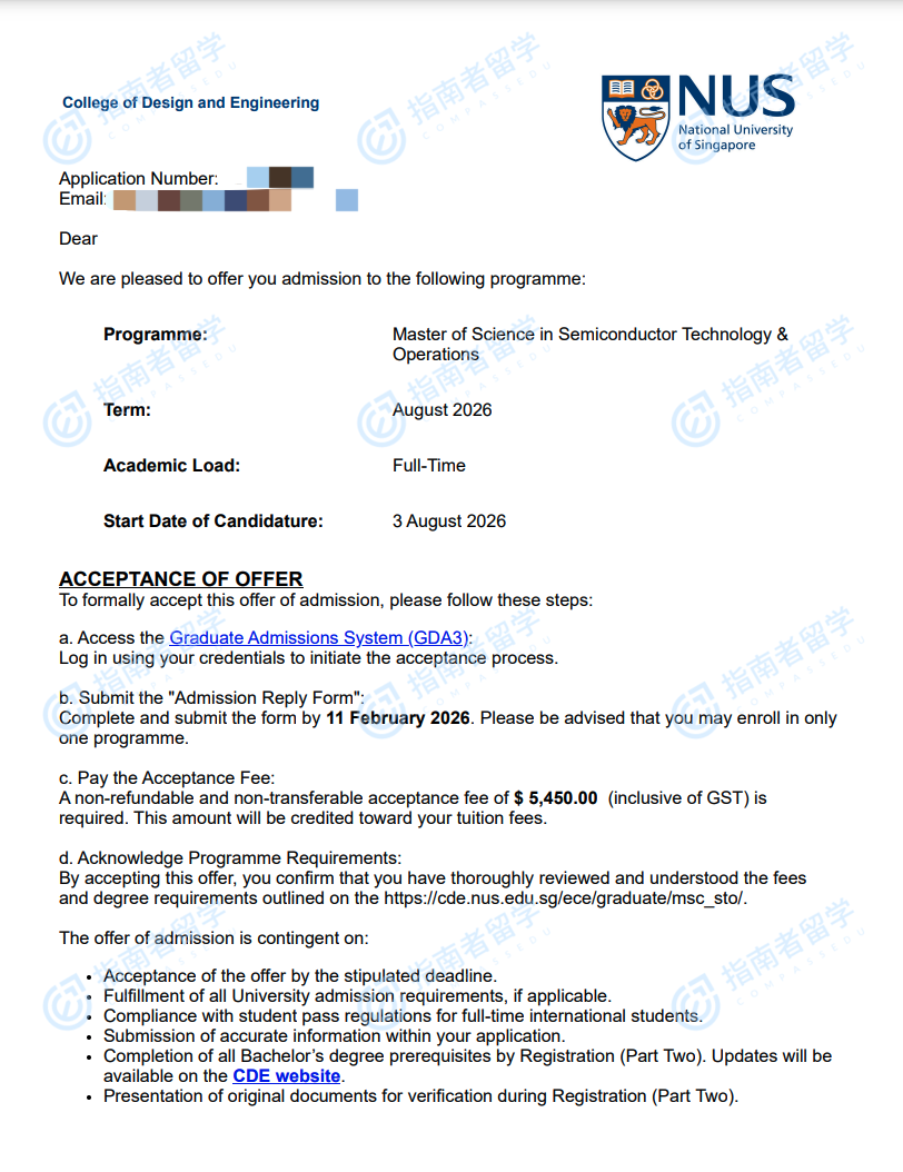 新加坡國立大學(xué)半導(dǎo)體技術(shù)與運(yùn)作理學(xué)碩士研究生offer一枚